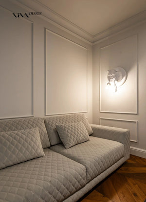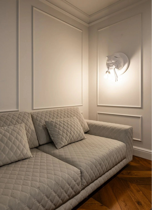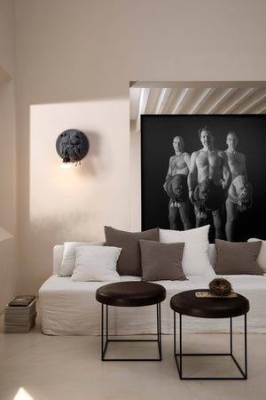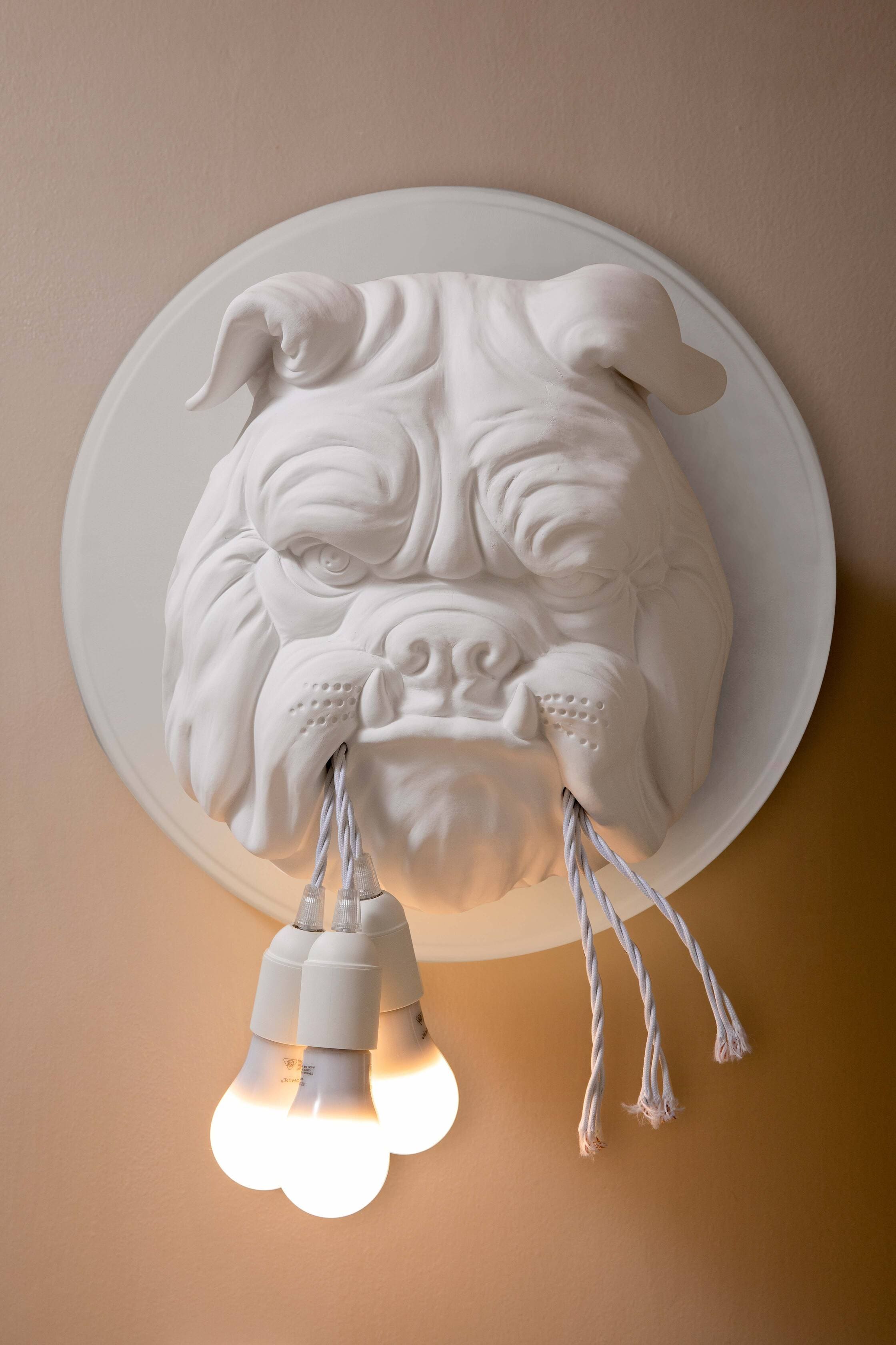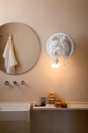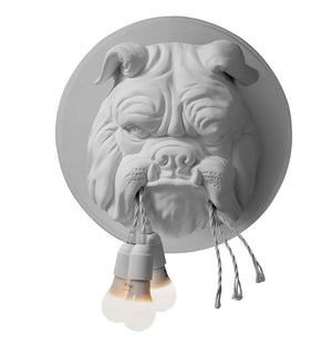 The Amsterdam applique is part of the Karman’s famous “Zoo” and is inspired by the bulldog of the Dutch capital, and which is famous all around the world. The bulldog’s head is made of white or grey matt ceramic, with three light bulb cables bundled in its mouth.