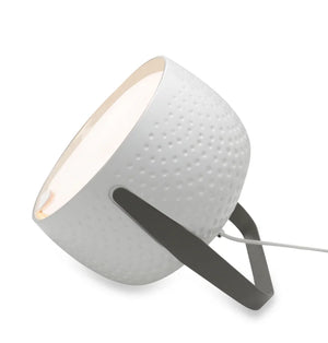 Bag is a glossy ceramic shell with a soft and comfortable shape. It is supported by a handle-shaped metal element, that allows either the ceiling, the floor or table support. Bag has a polished, white, or bronze ceramic body, with a smooth or textured finish that can provide direct or soft light, depending on the type.
