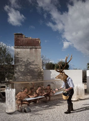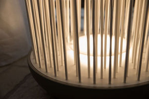 From a hemispherical base made of grey technopolymer, many luminous stems made of soft-touch white PVC are housed in a floating shank that attracts the desire for light and at the same time demands us to touch it. The floor lamp can be used both outdoor and indoor, and thanks to the O-ring, the rods can almost collect the rays of light.