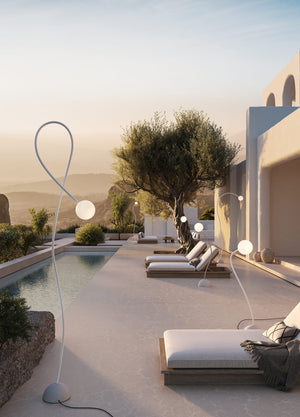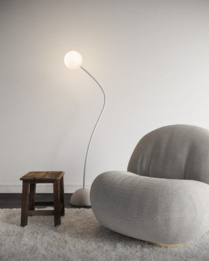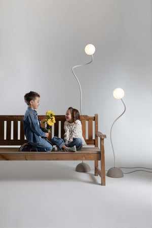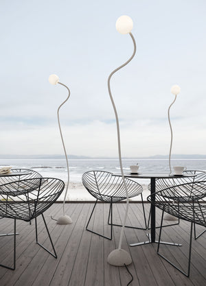 Moony by Marcantonio shows its best side by adapting to moods, thanks to its flexible arm. A versatile family, set out in single-arm applique fittings, a free-standing lamp in two heights, and a down light with single, three or even five arms to suit more complex personalities. The floor version faces upwards to the ceiling or is bent on itself, like a reading lamp. The applique version can be directed as needed, with the three- or five-arm fittings that are freed from a small cylinder secured to the ceiling, or any way your creativity can offer. The mobile rod in metal, with a white covering supports a frosted glass globe containing the LED light source. Also available in the outdoor version.