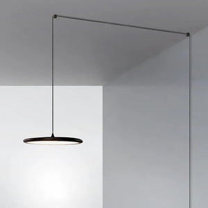 Description: Suspension, ceiling and wall lamp with a thin metal powder coated diffuser. The decentrate version has a versatile ceiling mounting system allowing to illuminate even in absence of electrical connection on the ceiling. In addition, the metal decentralizers allow the wire to slide to bring the light where it is needed. Thanks to its essential form, the light spreads evenly throughout the environment.