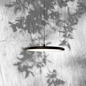 Description: Suspension, ceiling and wall lamp with a thin metal powder coated diffuser. The decentrate version has a versatile ceiling mounting system allowing to illuminate even in absence of electrical connection on the ceiling. In addition, the metal decentralizers allow the wire to slide to bring the light where it is needed. Thanks to its essential form, the light spreads evenly throughout the environment.