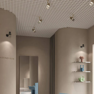 Description: In a world of spotlights with a masculine feel, Lei emerges: a system of technical spotlights with a crystalline and elegant aesthetic, based on curved elements that evoke the grace of the feminine universe, such as sartorial pleats and the sophisticated workmanship of precious perfume bottles. Available in matte black, brass, nickel and titanium finishes with clear and frosted glass or smoked, bottle green and red available on request. Lei is destined to capture every eye that passes, with its brilliant aesthetic presence.