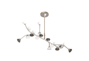 Description: Inspired and characterized by the natural world, the Linfa family of lamps designed by Federico Peri unfolds on arms so sinuous and elegant as to evoke the veins that run through the leaves, with bright points of light that shine like dew drops. In this family, made up of pendant, floor, table lamps and wall sconces, the refined branches are available in gold, titanium or matt nickel finishes, while the light sources, made of Murano glass, are available in smoky and transparent finishes or milky white.