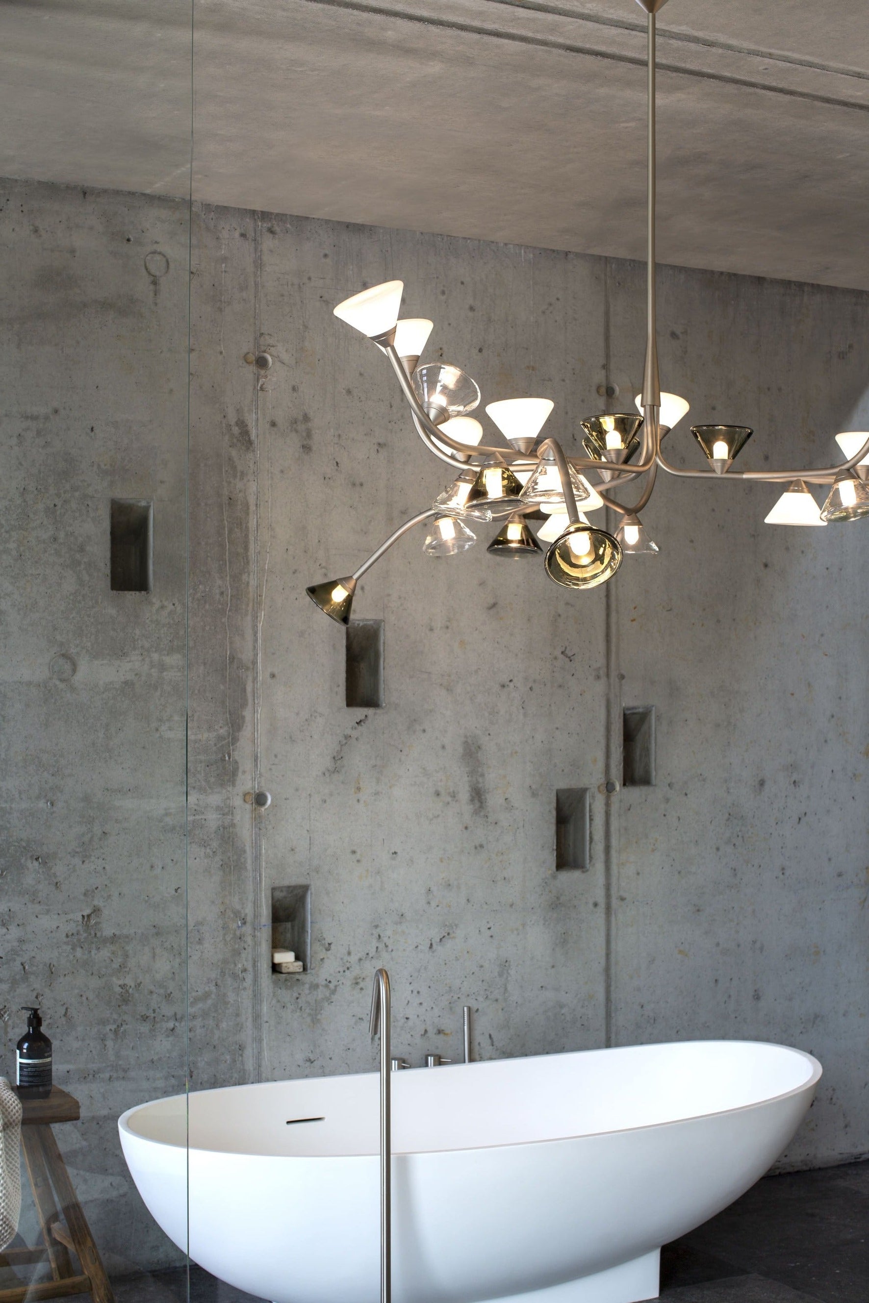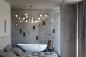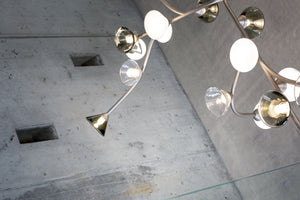 Mounting: Chandelier: 60/90 cm stems included (adjusted on site). Canopy: Ø 23,5 × 11,4 cm included with bracket. Light source: Integrated LED. Different glass combinations are available on request.