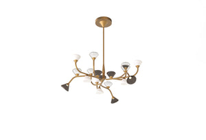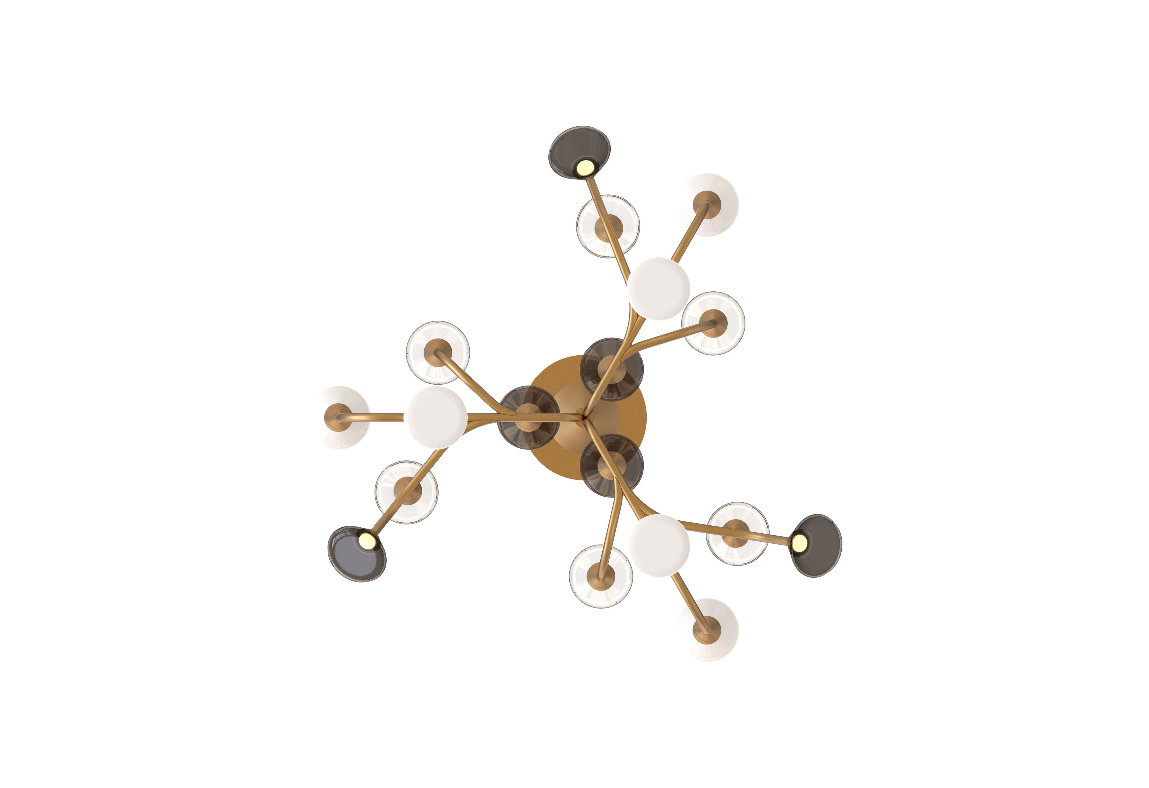 Mounting: Chandelier: 30/60 cm stems included (adjusted on site). Canopy: Ø 23,5 × 11,4 cm included with bracket. Light source: Integrated LED. Different glass combinations are available on request.