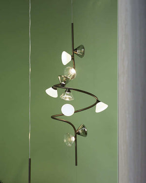 Mounting: Steel cable length 125 cm. Electric cable length 150 cm. Canopy: Ø20.5 × 9.2 cm included with bracket. Light source: Integrated LED. Different glass combinations available on request.