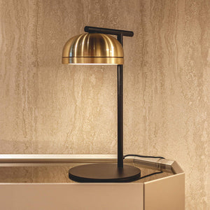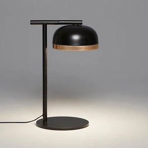Description: Contemporary side table with a painted dome and ring, either painted or finished with brushed brass, copper, or pewter. The bright diamond screen is made of plexiglass to better spread light out. This piece is versatile and fits any kind of setting, thanks to its simple shape yet rich materials.