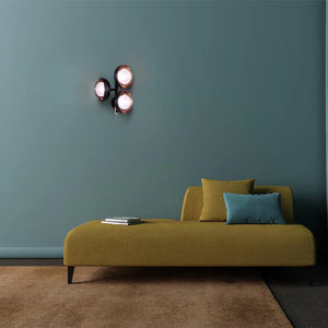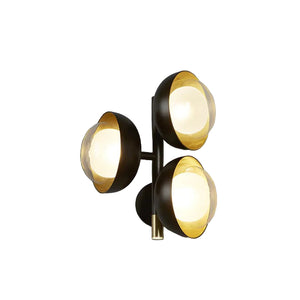 Description: Collection of neo-vintage metal lamps with a double-sided diffuser in borosilicate glass. The metal domes (internal and external) feature inner surfaces in painted finishes or polished brass and bright copper, creating rich textural combinations. The wall lamp version is provided with an additional G9 source in the lower part of the lamp.
