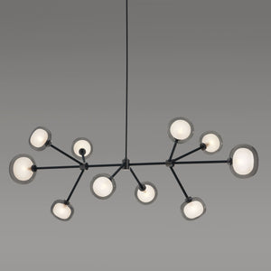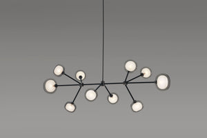 Mounting: Chandelier: 30/60/90 cm stems included (adjusted on site). Cable: 3 × 0.75 mm². Canopy: Ø 13 cm included with bracket. Glasses: 8 × Ø 12 cm; 2 × Ø 16 cm. Light source: Integrated LED.