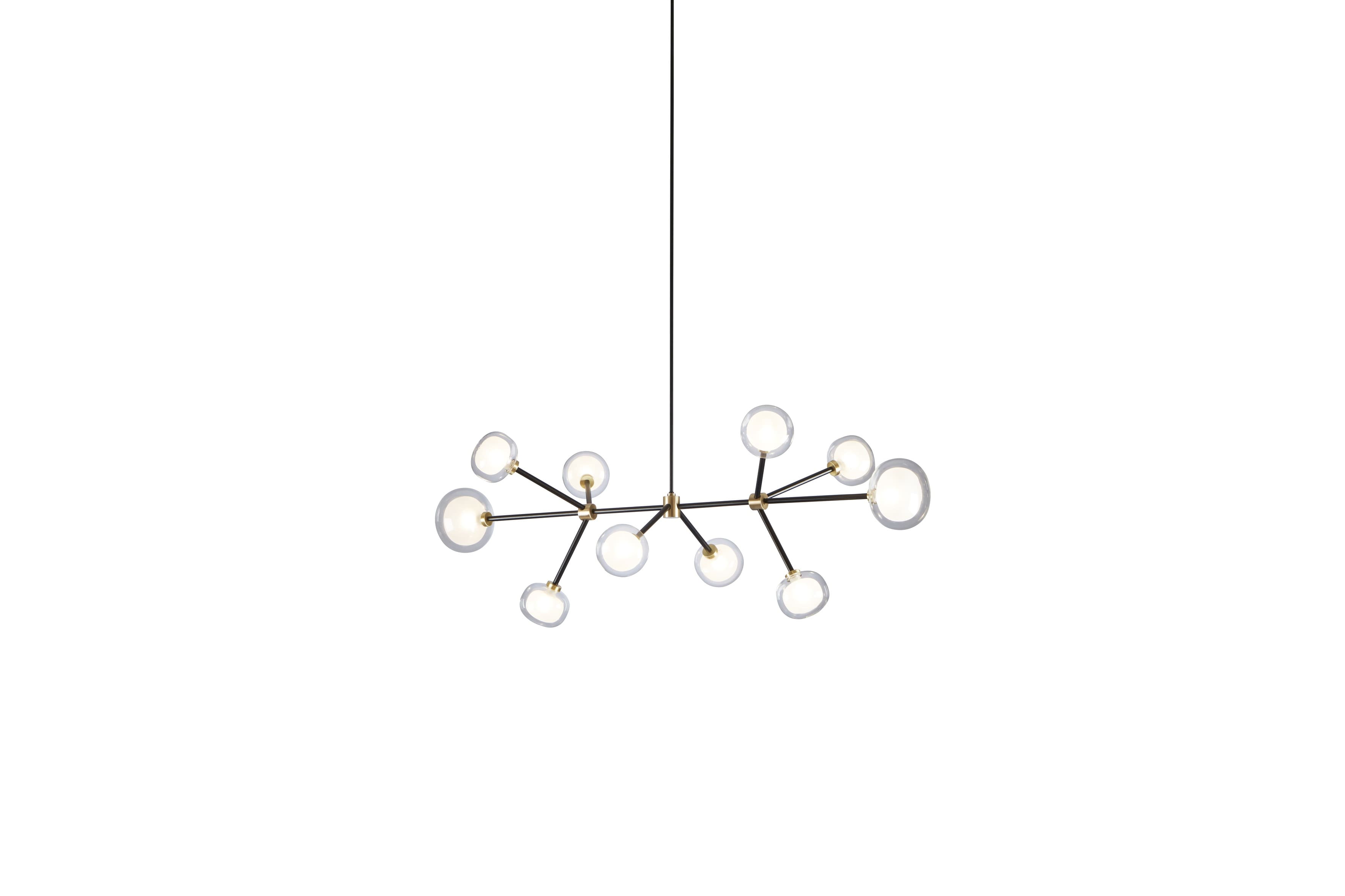Description: A double-sided spherical bright object in borosilicate glass makes these lamps available in different compositions and a structure made by metal coated with epoxy powder enriched with brushed brass or black chrome details. Richness and sobriety all in one single element.