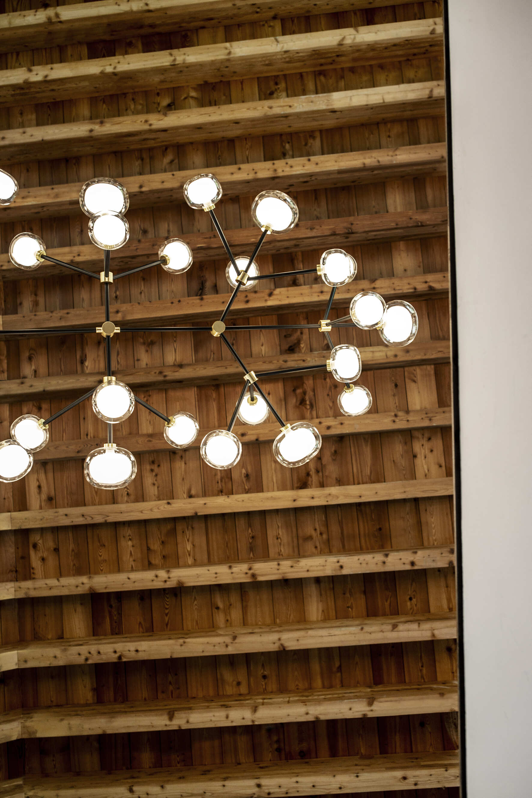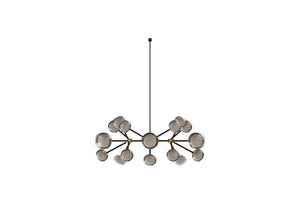 Mounting: Chandelier: custom stem included (adjusted on site). Canopy: 3 × 3 × 79.5 cm included with fixing bracket. Glasses: 24 × Ø12 cm; 8 × Ø16 cm. Light source: G9 bulb.