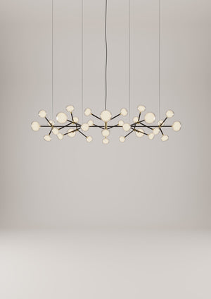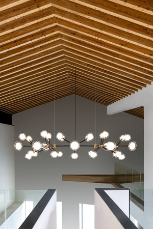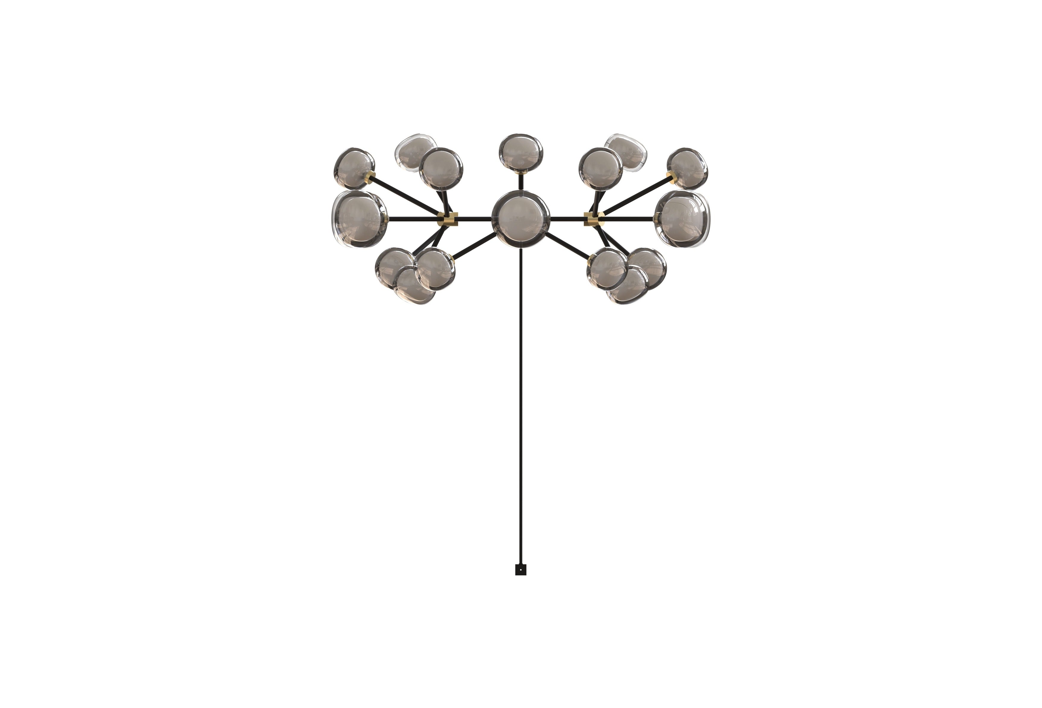Description: A double-sided spherical bright object in borosilicate glass makes these lamps available in different compositions. The structure is made of metal coated with epoxy powder and enriched with brushed brass or black chrome details. Richness and sobriety all in one single element.