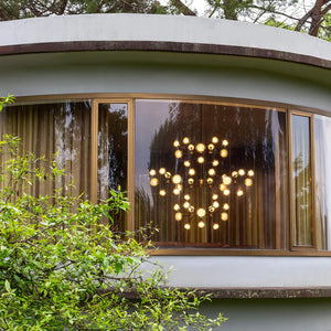 Description: A double-sided spherical bright object in borosilicate glass makes these lamps available in different compositions and a structure made by metal coated with epoxy powder enriched with brushed brass or black chrome details. Richness and sobriety all in one single element.