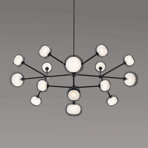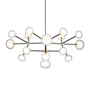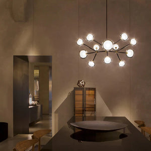 Description: A double-sided spherical bright object in borosilicate glass makes these lamps available in different compositions. The structure is made of metal coated with epoxy powder enriched with brushed brass or black chrome details. Richness and sobriety all in one single element.