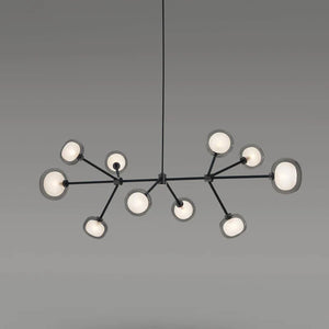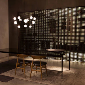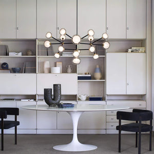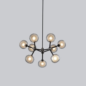 Mounting: Chandelier: 30/60/90 cm stems included (adjusted on site). Canopy: Ø 13 cm included with bracket. Glasses: 9 × Ø 12 cm. Light source: G9 bulb.