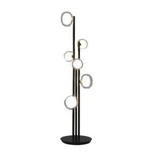 Mounting: Floor: cable length 300 cm. Plug: type F (Schuko). On/off switch: 80 cm from the base on black cable. Glasses: 3 × Ø 12 cm; 3 × Ø 16 cm. Light source: G9 bulb.