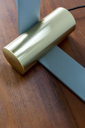 Description: The Nastro table lamp sees an epoxy powder coated aluminum band structure accompanied by a cylindric weight that counterbalances its flexuosity, in a refined visual balance. The light source consists of a dimmable LED strip; the cylinders are available in epoxy powder coated metal, in wood, in brushed brass and in raw concrete.