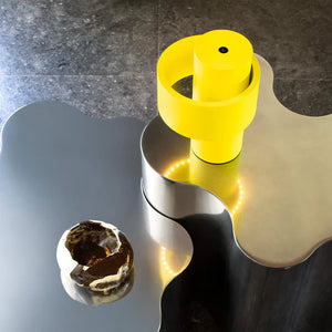 The TOOY Nastro Portable Table Lamp brings together refined design and smart functionality in a compact, versatile form. Designed by Studiopepe, this elegant piece carries the signature sculptural language of the Nastro collection, featuring a cylindrical weight delicately balanced within an epoxy powder-coated aluminium band.