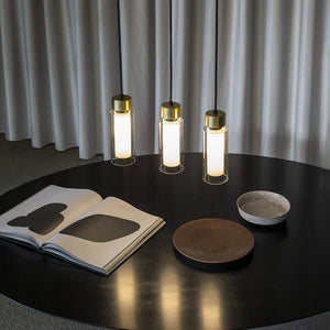 Description: Family of lamps with a rational design enriched by precious metallic details and double-wall cylindrical diffusers that give a fascinating and harmonious light diffusion. The particular orthogonal structure and the well-balanced proportions give these lamps a strong avantgarde sign while maintaining a formal, familiar and refined appearance.
