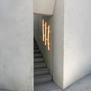 Description: Sculptural characters and deconstructed lights, for accessories that border on art: Tratti is a scenographic modular lighting system made up of floor lamps, ceiling lamps and wall sconces that stand as entities in which lighting and matter unify. Characterized by a slightly grainy white finish, noticeable even when turned off, and made of 3D printed nylon powder, these lamps are defined by a soft and diffused light that outlines the anatomical structure of the element from the inside.